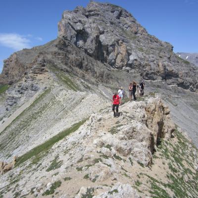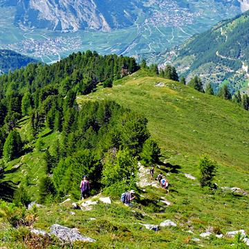Le Fou (canton du Valais): cette randonnée exigeante débute à 1700 mètres d'altitude et mène à un ombilic glaciaire perché où se succèdent des lacs aux eaux glacées, à proximité de la station de Verbier. Après le picnic et la sieste sur les bords du Lac des Vaux, nous nous engageons dans un sentier escarpé et aérien pour atteindre le vaste sommet du Fou (2610 m). La vue sur tout le Valais et la chaîne septentrionale des Alpes est stupéfiante. La redescente se fait par une crête rocailleuse puis parsemée de Bruyères et enfin entre les troncs multi-séculaires de mélèzes gigantesques. NIveau expérimenté, 5h30 de marche effective.