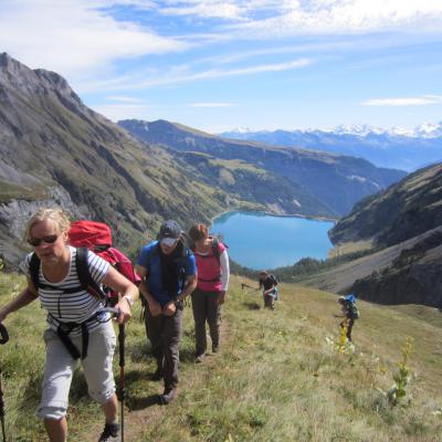 Traversée des Alpes du Nord en 2 jours (cantons du Valais et de Berne) : à pied, c’est toujours une émotion de passer d’une vallée à une autre. Un col, c’est comme une porte ouverte sur l’inconnu, c’est le Passage! Celui du Rawil relie le Valais romand à l’Oberland bernois en un vaste plateau de plus de 2 kilomètres de long et presque autant de large posé à 2400 m d’altitude. Une randonnée sur 2 jours qui procure le sentiment d’un voyage lointain. Nuit en pension de montagne. Niveau moyen à expérimenté, 5h00 et 6h00 de marche effective.