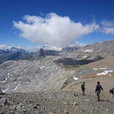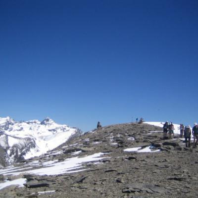 Tour du Ruan (canton du Valais et France), 4 jours : un véritable périple entre ciel et terre, sur les traces des premiers dinosaures et à l'assaut de passages escarpés où règnent en maître les fascinants bouquetins. Nous naviguons entre pierriers et cols enneigés, par des échelles parfois vertigineuses. Ce tour est pour les ceux qui n'ont pas froid aux yeux et qui aiment se trouver dans des lieux éloignés de tout. Nuits en cabanes et auberges. Niveau expérimenté et entraîné, entre 6h00 et 7h30 de marche effective.