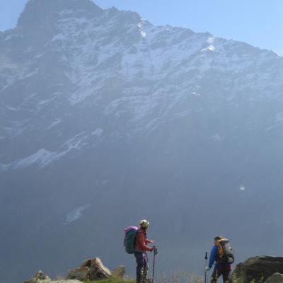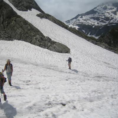 Tour du Balmhorn (cantons du Valais et de Berne), 5 jours : itinéraire en boucle depuis Loèche-les-Bains reliant le versant sud des Alpes septentrionales, côté valaisan, au versant nord, tourné vers le pays bernois. C’est une immersion dans l’histoire des voies de communication à travers les Alpes, à une époque où marchands et voyageurs usaient le cuir de leurs semelles plutôt que celui de leur popotin pour parcourir la montagne ! Un tour qui se déroule en altitude (entre 2300 m et 3300 m en général) et propose des paysages et des lumières qui resteront gravés dans la mémoire des participants. Nuits en cabane et en pension de montagne. Niveau expérimenté, 4h00, 7h00, 6h00, 4h00, 6h30 de marche effective.