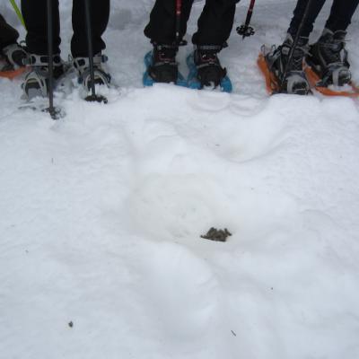 Wild animal tracks, half day. Look for animal tracks and signs of their presence. Role games to feel at ease in the woods and the mountains. Summer or Winter. Full day also possible.