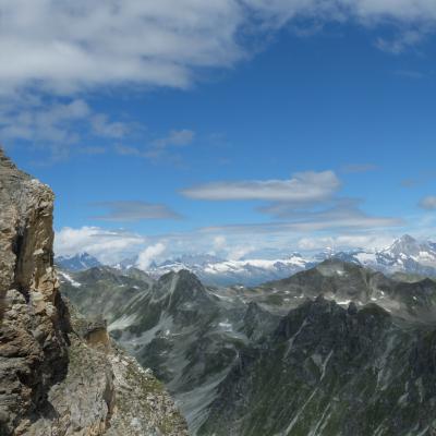 Dents de Morcles (cantons of Valais and Vaud) : starting from the resort of Ovronnaz in Valais, we stroll up to the Fenestral hut on the first day. The second day we make our way through a maze of gigantic fallen rocks and through the remnants of an ancient glacier bed before reaching the small cliffs leading up to the summit of Dent de Morcles. An amazing viewpoint over the whole Rhone valley and the Lake Léman (Geneva Lake) in the distance. We take along some rope for a small climbing section. Night in a small mountain hut. Tough grade, 5 and 6 hours daily effective walking times.