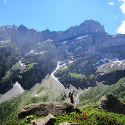 Tour des Muverans (cantons of Vaud and Valais): this 4 day tour is a classic of the Limestone Alps. We can start from the North side of the Muverans (Plans-sur-Bex) or from the South Side (Ovronnaz). In both cases the hike circles around the impressive Muverans, a wild and remote limestone massif. We move from hut to hut and in one small hotel, and traverse high enough to discover Edelweisses and other beautiful mountain flowers. Wildlife is garanteed (Chamois, Ibex, Marmots, Eagles and Bearded Vultures). A fairly demanding tour, although with not too much denivelation. Suitable for most. Between 5 and 7 hours effective walking times.